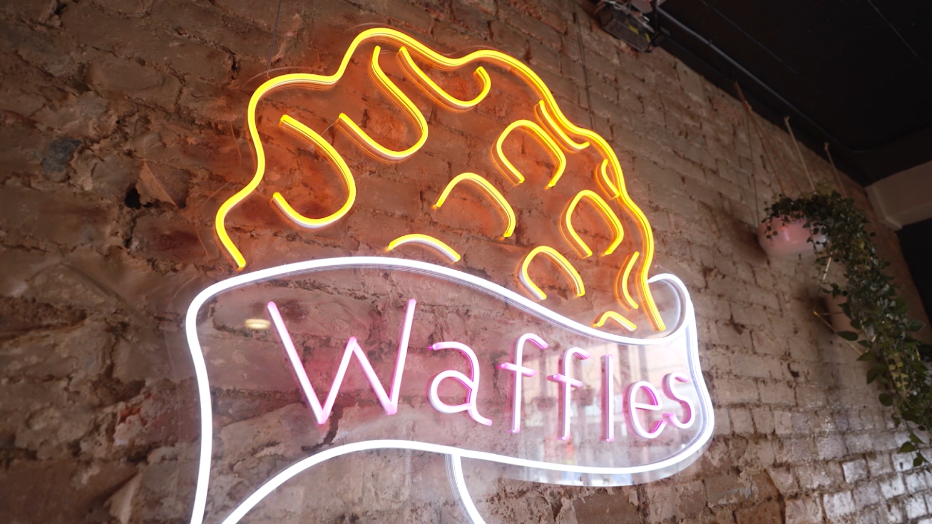 Our menu is built around genuine Belgian-style waffles - crispy, warm, and made to pair perfectly with everything from fresh fruit and local honey to savory favorites like fried chicken, eggs, and pimento cheese. We keep things fresh, we keep things fun, and we keep it welcoming for everyone - from families and first-time visitors to regulars who know exactly what they're craving.