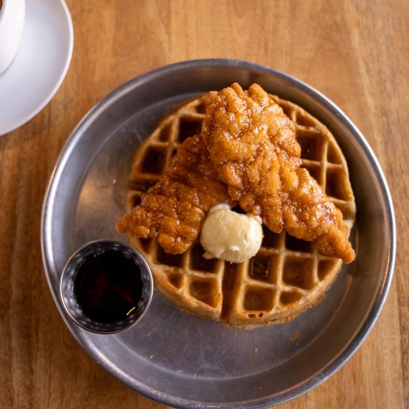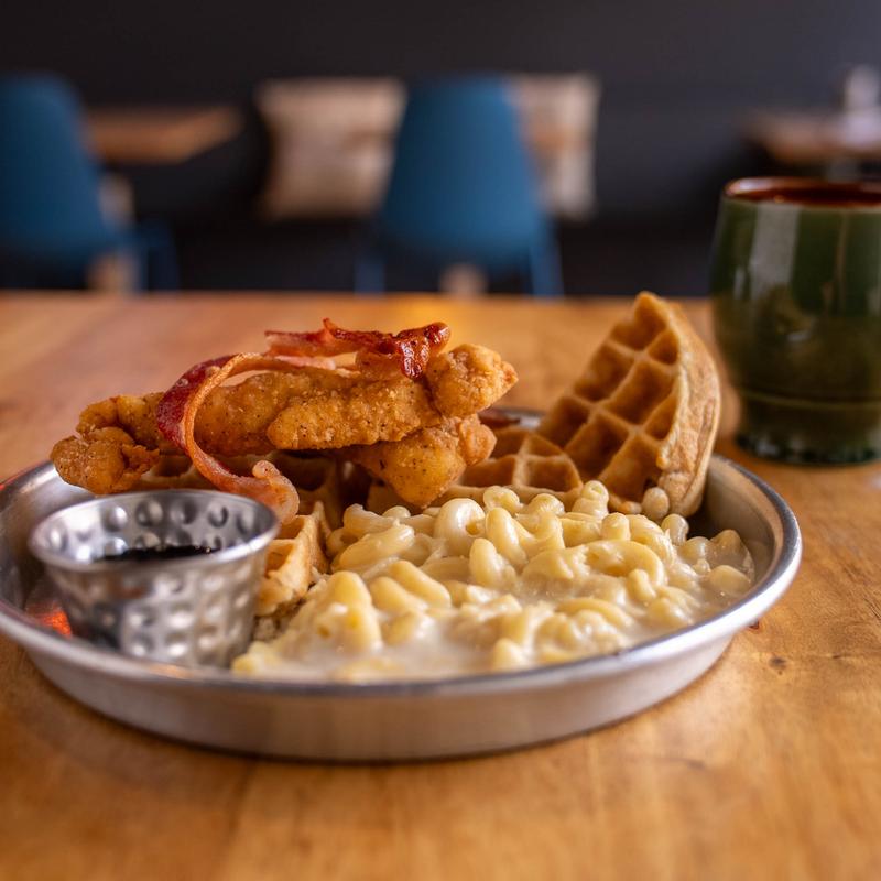 Fried chicken, bacon, white cheddar, mac & cheese, maple syrup