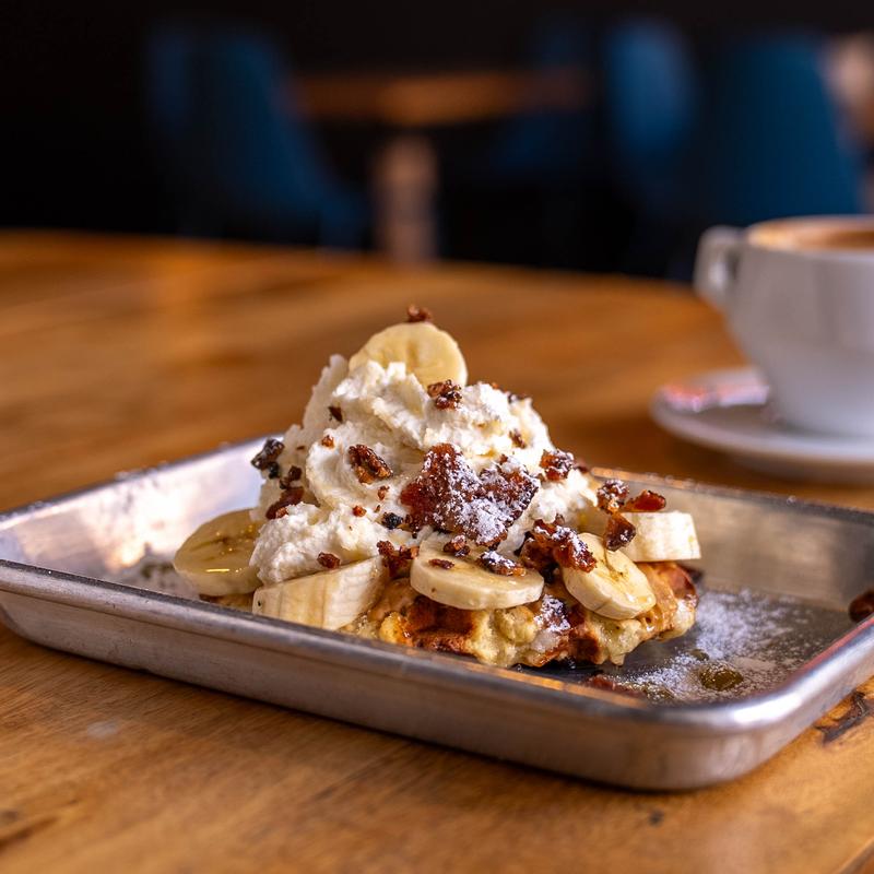 Strawberries, Bananas, Blueberries, Bacon, Peanut Butter, Marshmallows, Choc. Chips, Oreos, Fruity Pebbles, Cookie Butter, Honey, Cannoli Cream, Choc Sauce, Powdered Sugar, Whipped Cream